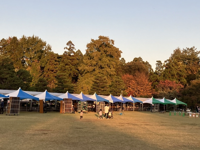 芝生広場にステージが設営されていた。植物園の改築案ではイベントステージを恒常的に設置すると初期は構想されていたが、一日で組んでばらせるステージイベントを毎年、年に一回やっているんなら、別に改築する必要はないかなーって思った。